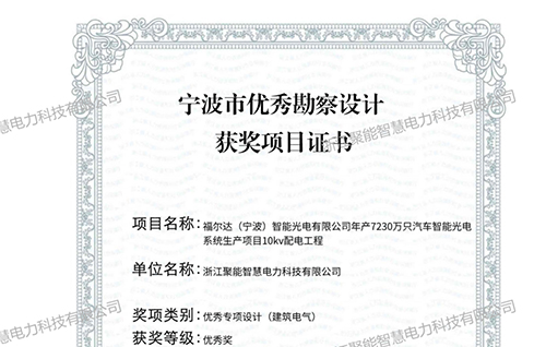 近日,2025年度宁波市优秀勘察设计奖评选结果揭晓,浙江聚能智慧电力科技有限公司凭借突出的技术创新能力与专业设计水平,在电力工程领域斩获四项大奖,彰显了公司在电力工程领域的领先地位与专业水准。
